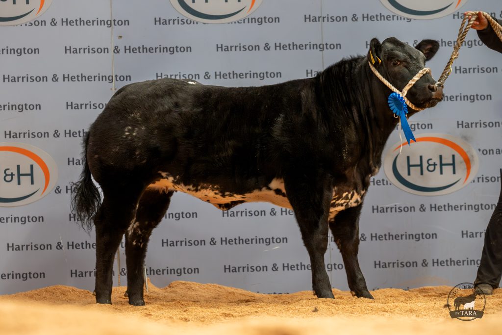 Last weekend, Michael & Melanie headed to Carlisle for the H&H Spring Show & Sale. Lot 196 caught our eye, she stood second to the reserve champion and topped the sale at £15,000. This outstanding blue roan heifer shown by Zoe Hall and Mark Batty, Horsley Hill Farm, Hawick was sired by their stock bull Impulsive Phoenix. We have since sold a half share in “The Countess” to Mary Cormack of the Rougemont herd.